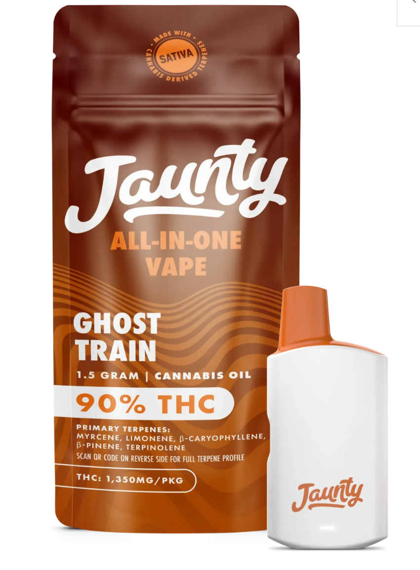 Gost Train is a hazy sativa with a sweet blend of sour, citrus and piney aromas, known for its energizing effects and creativity boosting qualities.